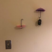 These umbrella key hooks are so cute! I did not give a great rating for adhesion because I used Command Strips to put them up as I am in a rented home. Otherwise I like them a lot!